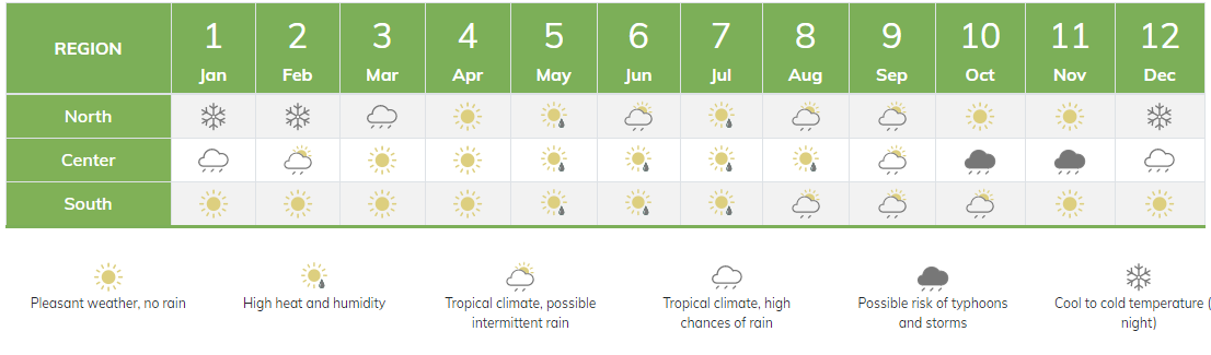 Vietnam's weather ranges from a familiar four-season system in the north to eternal summer in the south. Because of regional variation, there are pleasant places to visit in Vietnam throughout the year.